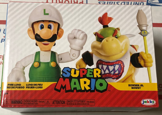 Jakks Super Mario Bowser Jr. Bowsy and Fire Luigi 2-Pack 4" Inch Articulated Figure